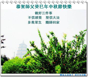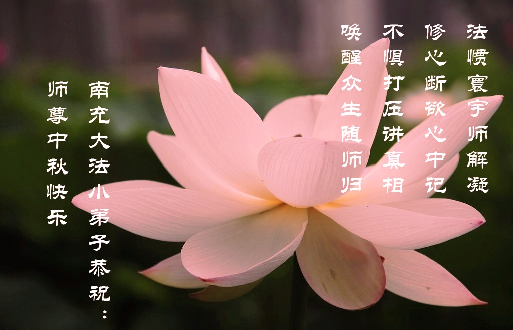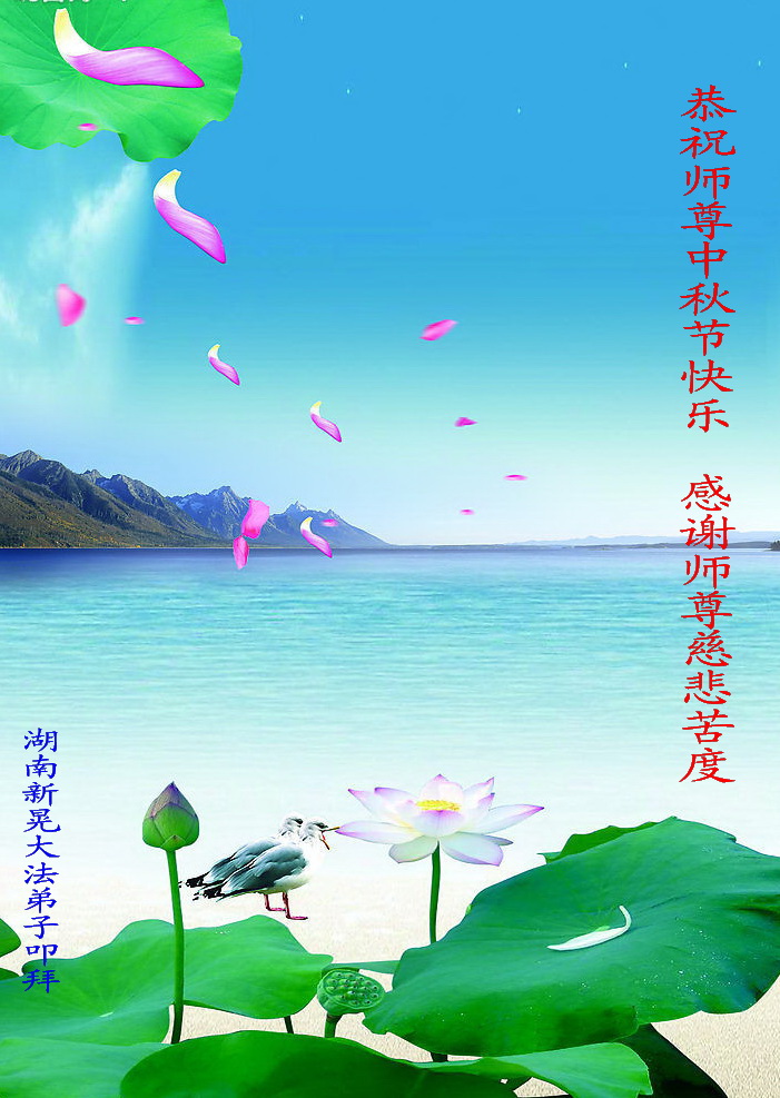 在师父巨大付出下,又到了中秋节,我们想念师父!当前正法洪势向人间迅速推進,我们当地有新学员得法,我们要做好三件事,多学法,多救人。