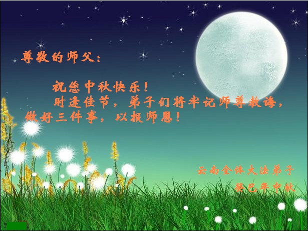 全体关岛大法弟子恭祝师尊:中秋快乐!