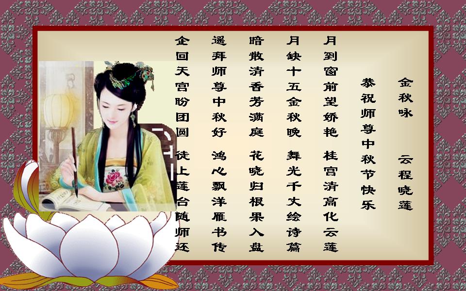 | 谢师恩 中秋佳节月光华 慈悲祥瑞漫天下 |