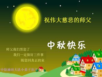 我怀着无比崇敬的心,恭祝最伟大慈悲的师父中秋节快乐!我一定要学好法,在常人中做个更好的人,超常的人。