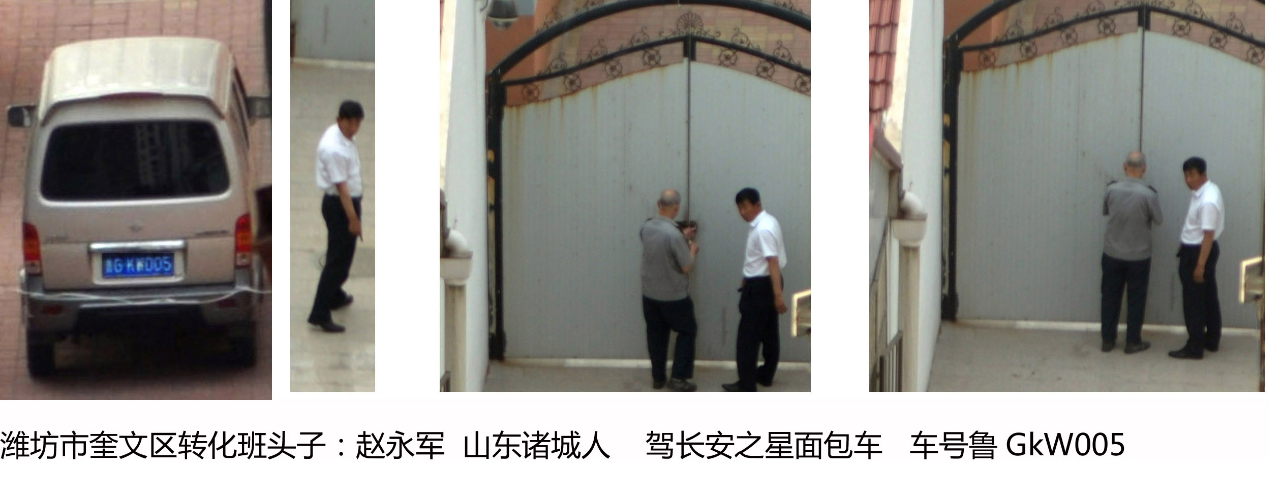 上图中照片上穿白衬衣的是洗脑班打手赵永军。赵永军,男,50岁左右,中等个,黑红长脸,心狠手辣,内部人称他“赵主任”,所有迫害法轮功学员的邪恶计划,恶毒手段,都是他所为。他迫害法轮功学员后,再向潍坊市奎文区“610”头子高兴昌表功请赏。高兴昌和赵永军经常到酒店吃喝,两人狼狈为奸,高兴昌挖空心思绑架诈钱,赵永军出谋划策赤膊上阵迫害。该恶人驾长安之星面包车,车号鲁G--KW005。