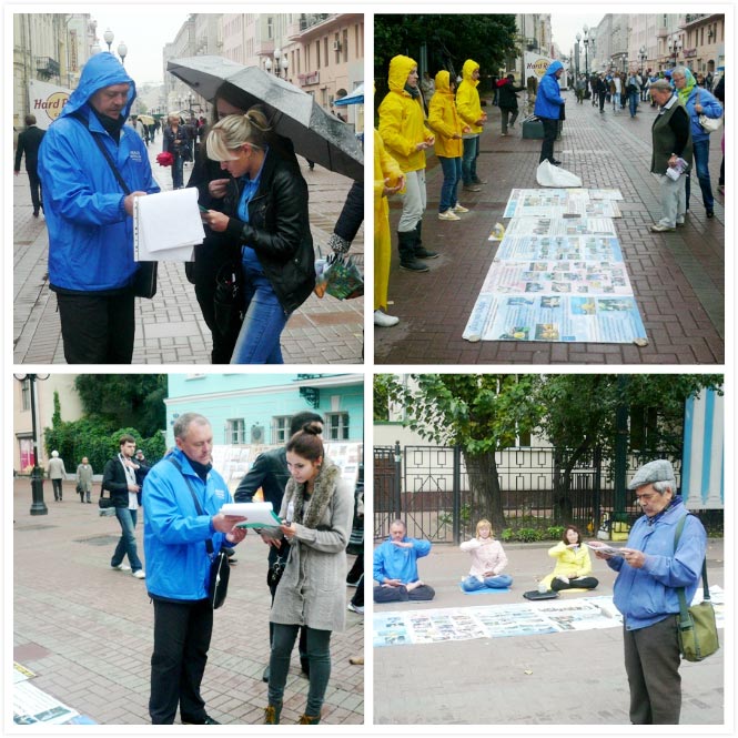 一位来莫斯科不久的中国学员讲述了自己和孩子得法和讲真相的经历。来到莫斯科第二天就和俄罗斯的同修去了阿尔巴特大街,和那里同修们一起对来自中国大陆的旅游者讲真相劝三:退.。看到这边的俄罗斯大法弟子在真相点自由的炼功讲真相发资料,又想到大陆大法弟子所遭受的迫害,那天在阿尔巴特掉了三次泪,悟到一定要借这个机会让更多的中国人了解真相。后来几乎每天都到阿尔巴特大街洪法讲真相,有的华人很关心的送来点心;明真相的华人看到学员也露出了真心的笑容;有时还碰到了从国内过来的同修。她表示:“一次又一次的真切感受到大陆和国外的环境差异之处。但是我们大法弟子是一个整体,无论我们来自哪里,是什么民族,我们来世的目的只有一个,救人、助师正法。”