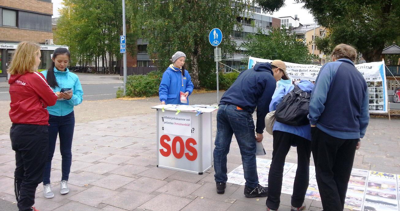 ![]() 图1:芬兰民众在“反对中共活体摘取法轮功学员器官”征签簿上签名 |