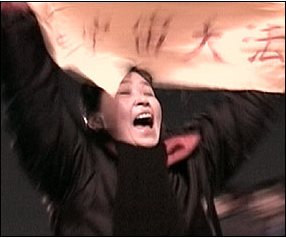 ![]() CNN: 一名女法轮功学员展开横幅高呼 为法轮功和平请愿 |