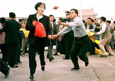 ![]() 美联社图片:一名女法轮功学员在天安门广场和平请愿 |