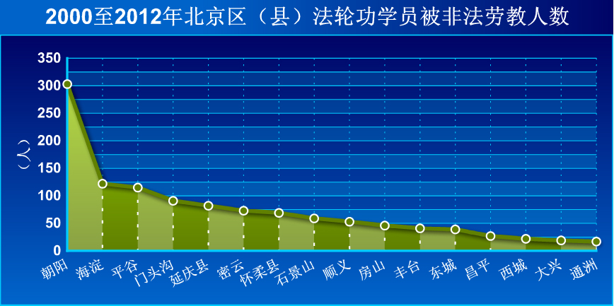 明慧网二零零零年至二零一二年北京区(县)法轮功学员被绑架人数: