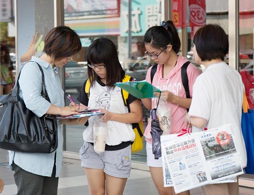 ![]() 高雄法轮功学员每周末在著名景点、观光市集展开征签活动,谴责中共活摘器官。 |