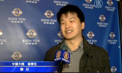 来自于中国大陆的华人留学生宋喆观看了一月五日下午场的神韵演出后深感触动,演出结束后,久久在剧院内徘徊不愿离去。他表示,演出给他带来了深深的震撼。