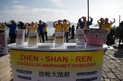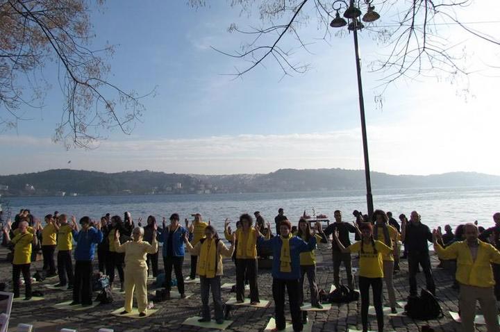 ![]() 法轮功学员在在Ortakoy集体炼功 |