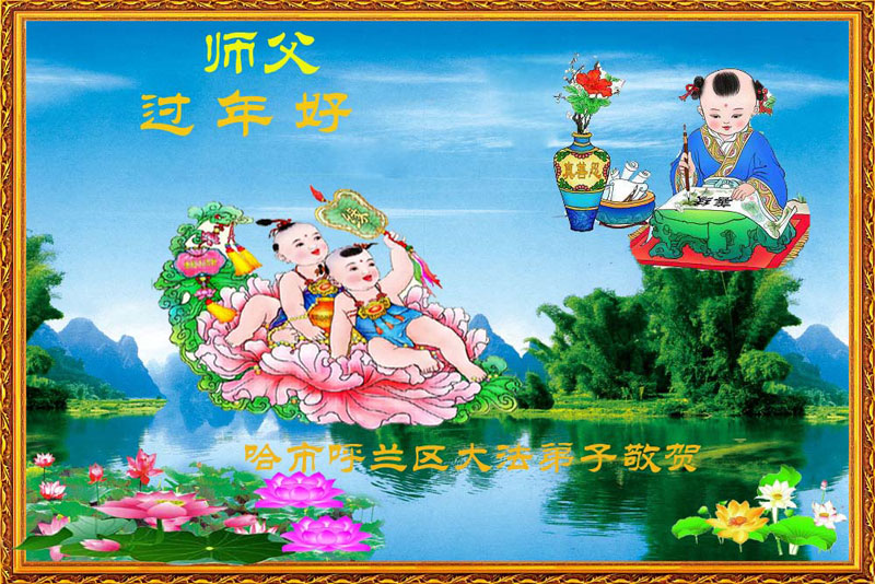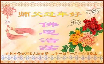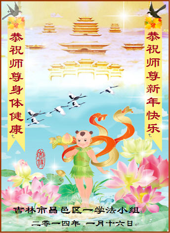 我们这个家族共七个家庭三十余口人。自从明白大法真相之后,我们就毅然退出了中共的党团队邪教组织,远离邪恶,保护救人的大法弟子,并且在平时顺应大法“真、善、忍”的标准行事,尽量多做好事,不做那些缺德事,托大师的福,我们家家都多次受益,上班的工作顺利,经商的买卖兴隆,上学的成绩优秀,最近几年,家族中出了六个研究生,家家幸福平安,人人健康愉快。我们对李大师非常敬仰,非常感激!特在中华传统节日新年到来之际,给尊敬的李大师拜年!祝李大师新年愉快!谢谢李大师!