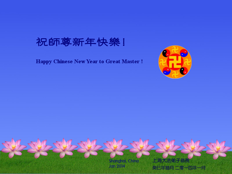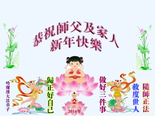 无限的感恩李大师慈悲救度,无限的感激冒着生命危险在中国大陆向世人传递真相的每一位法轮大法修炼者,并祝他们新年快乐!