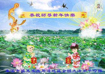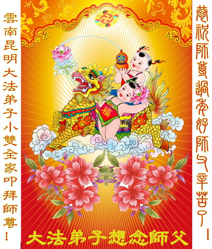 值此新年之际,我们携全家老小以及沐浴法轮大法恩泽的世人衷心的祝贺慈悲伟大的李大师新年愉快!