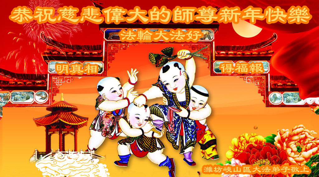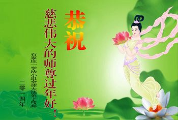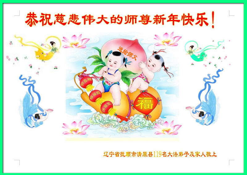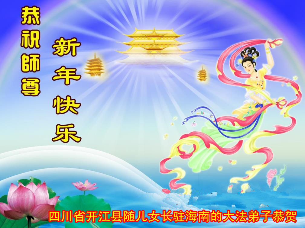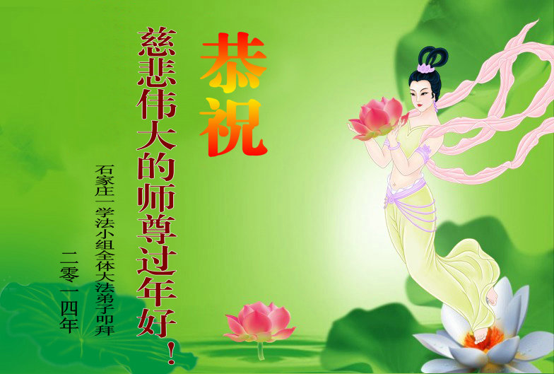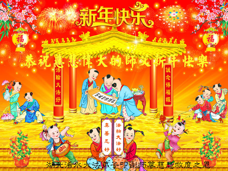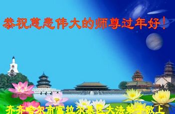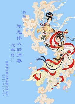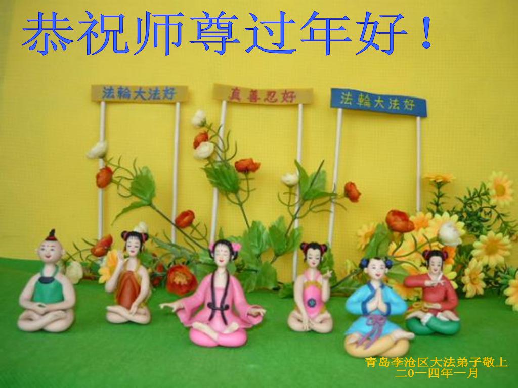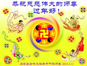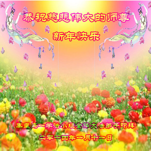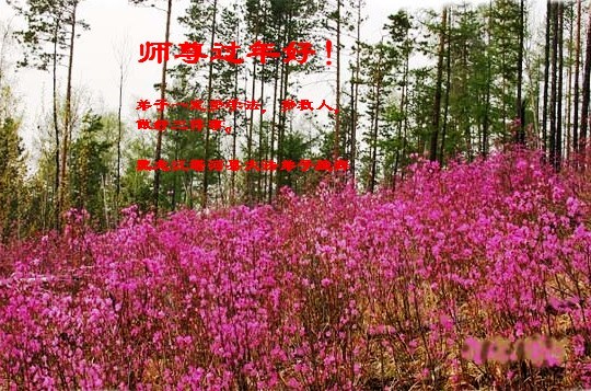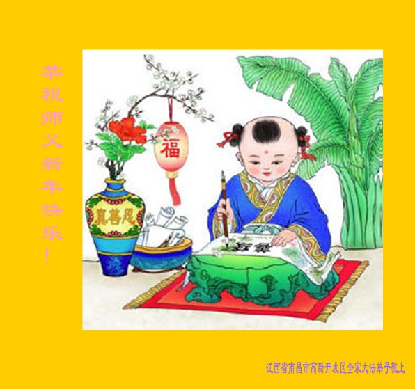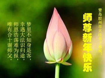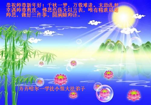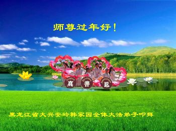 感谢师尊将我从地狱捞起,使我无病一身轻、使我明白了生命的真正意义。用“真善忍”归正自己的一思一念真好,不断修去为私为我的私心,向完全为了别人的无私无我的境界升华!牢记师尊教诲,在新的一年里做好三件事、多救人,和亲人同修配合好,完成史前大愿。谢师恩!我们五口之家向师父拜年!跪拜师父!