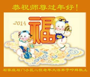 新年好!在此祝你们:新年吉祥,万事如意。在这辞旧迎新、欢度佳节的日子里,家家都欢欢喜喜,团团圆圆。可是父老乡亲你们是否知道,还有一些修炼真善忍的好人此时正在监狱里、劳教所里和看守所里遭受残酷迫害,不能和亲人团聚。他们的亲人整日以泪洗面期盼着亲人回家团圆。