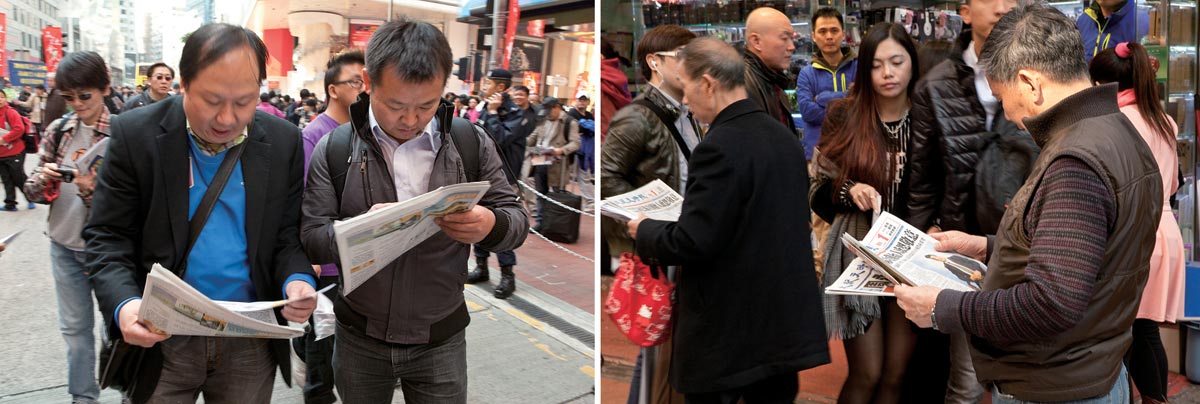 许多大陆游客在观看队伍游行之际拿到学员派发的法轮功真相特刊,他们仔细阅读,渴望了解真相。也有许多人把握来到香港自由地区的机会办了三:退.(退出中共党、团、队组织,简称三:退.)。