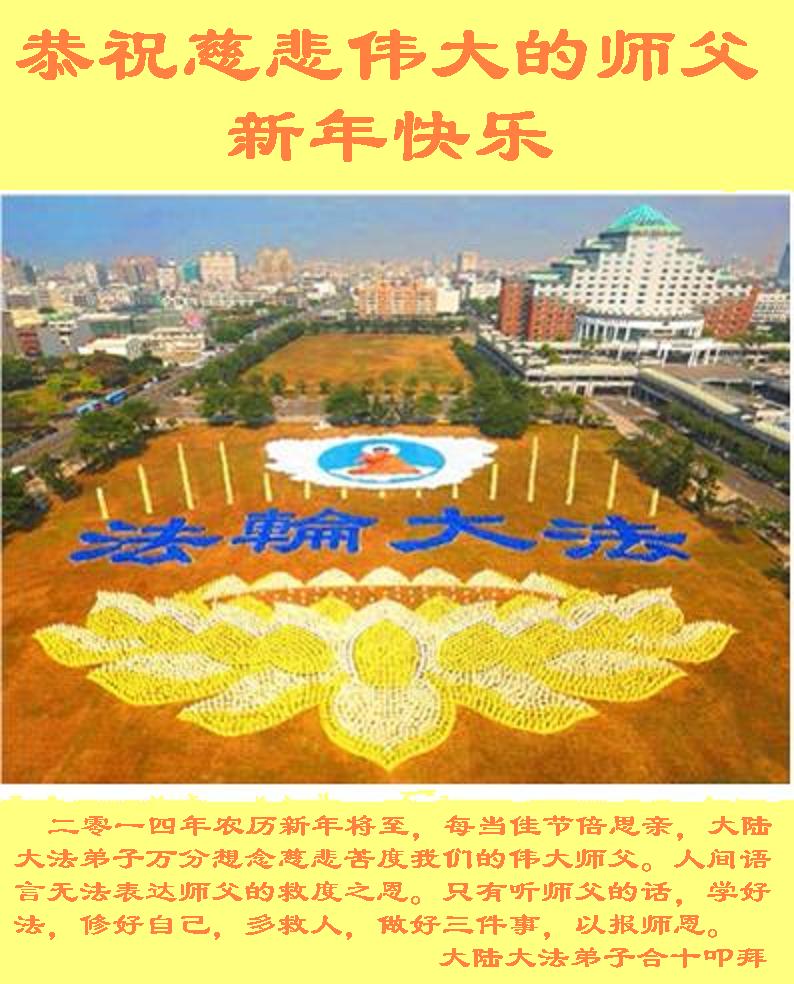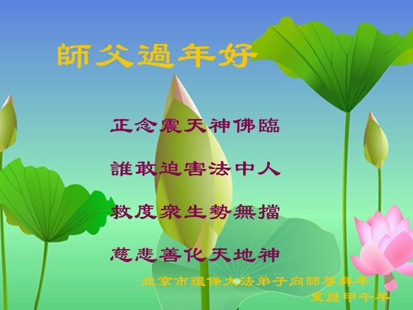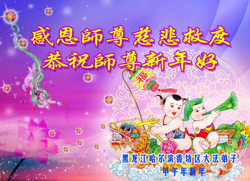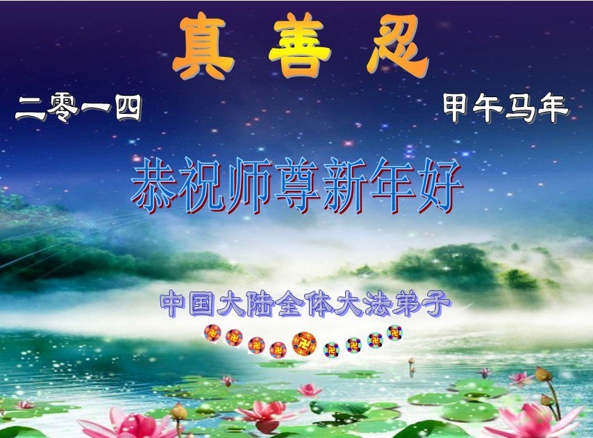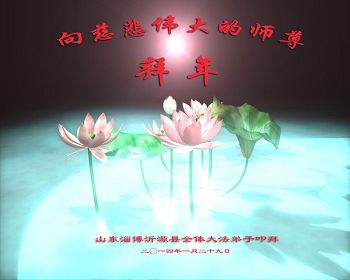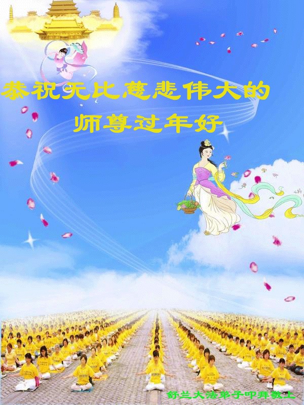在甲午年新年到来之际,弟子们给师尊拜年了!弟子们按照师尊的要求,坚持多学法、学好法、用心学法,认真做好三件事。在师尊的慈悲呵护下,正念正行又平稳的度过了一年。在新的一年里,我们要更加努力的多学法,学好法,整体配合好,遇到问题向内找,正念正行做好三件事,完成我们的史前大愿,随师尊回家。