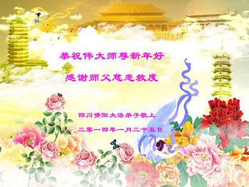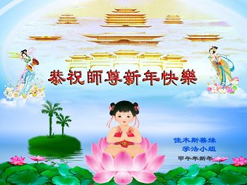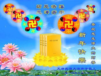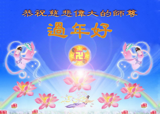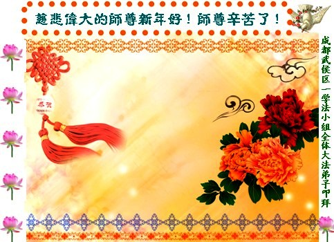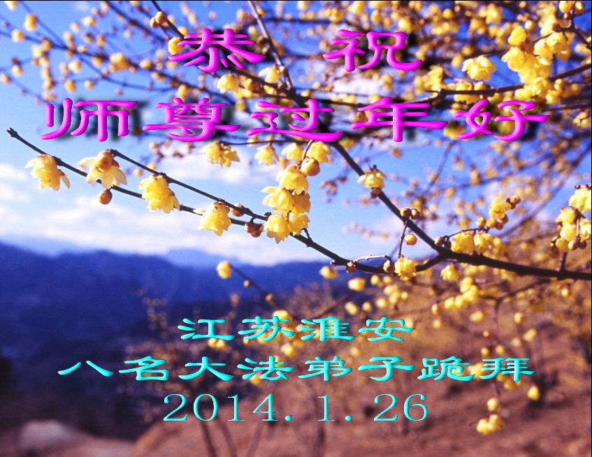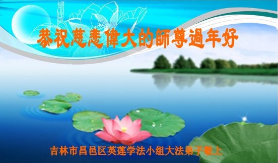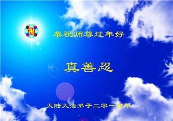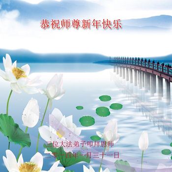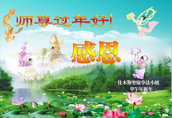 中国传统大年来到了,弟子恭祝师尊新年快乐!听人说,耶稣讲过税吏最难度。在这复杂的环境里我们俩位大法弟子一定遵照师尊的教诲,尽最大努力多救人!同时代表我妻子及女儿向慈悲伟大的师父叩谢救度之恩,在正法的最后时刻,我们一定以法为师,做好三件事,继续多救人,圆满随师还。