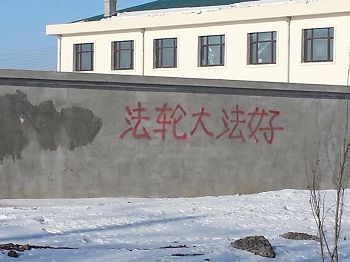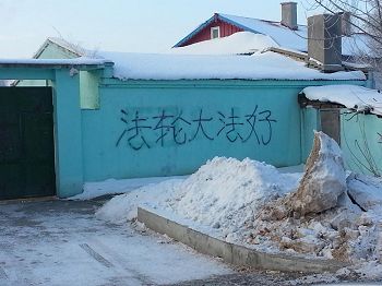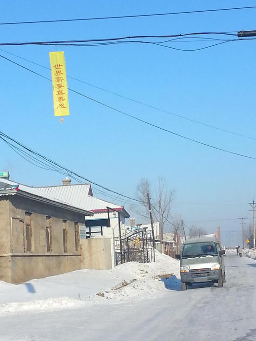 法轮大法日 黑龙江某市出现大量真相条幅标语