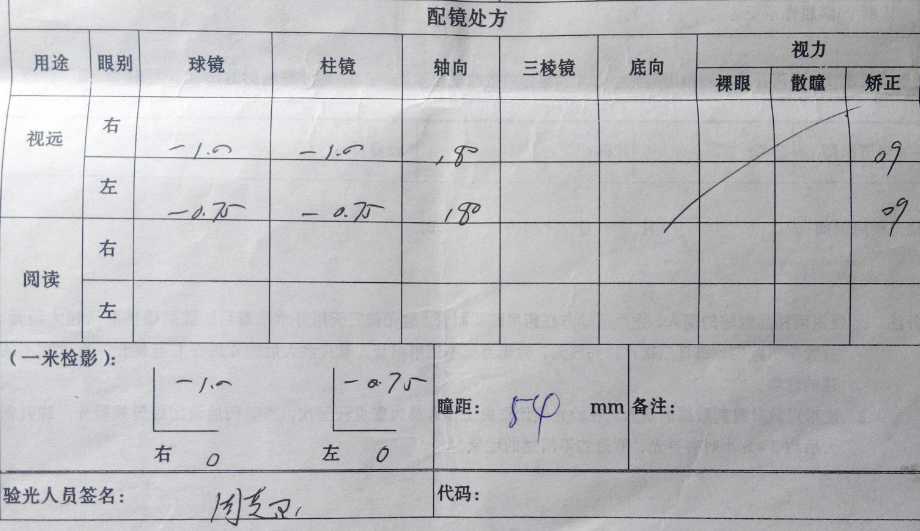 ![]() 图为在华西医院检查时当时的配镜处方 |