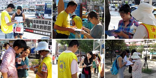 台北初秋的阵风吹乱了旅人的发丝,却吹不散人们了解真相之后被唤醒的良知及激起的正义。民众纷纷提笔联署,呼吁制止中共的血腥暴行。