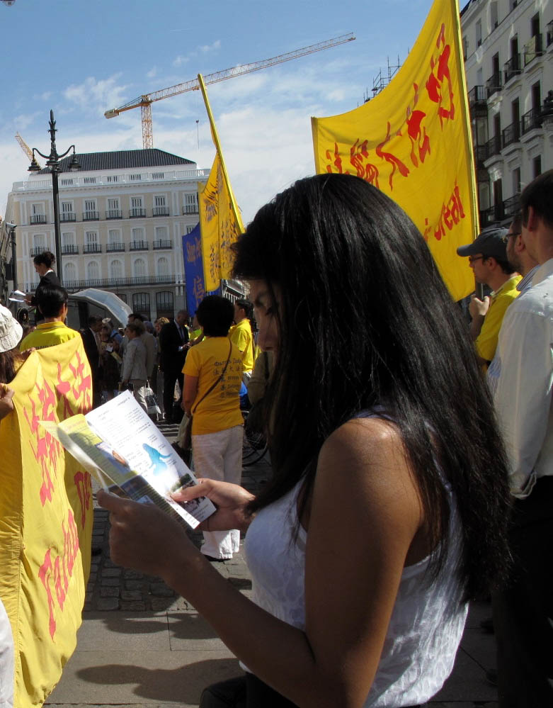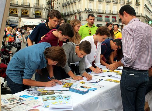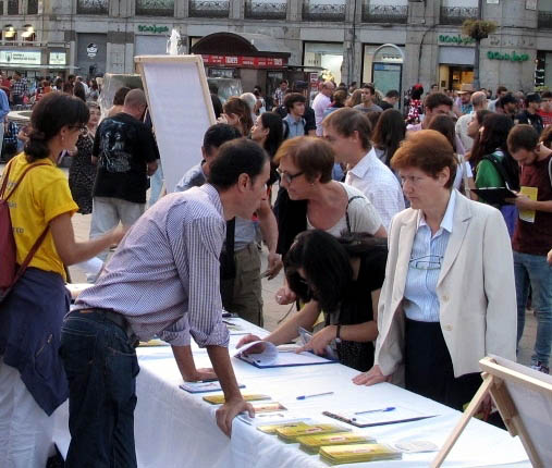 西班牙民众以特有的开朗和热情来了解法轮功,直接坦率地表达自己支持法轮功反迫害的正义态度。经常有人主动找到法轮功学员了解真相,并谴责中共暴行,表示愿意为制止迫害尽自己一臂之力。