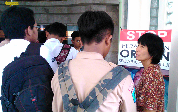 ![]() 图1:印尼非政府组织CICS和东爪哇历史教师协会举办“激进主义和共产主义的威胁”研讨会,邀请法轮功学员讲述发生在中国的迫害详情 |