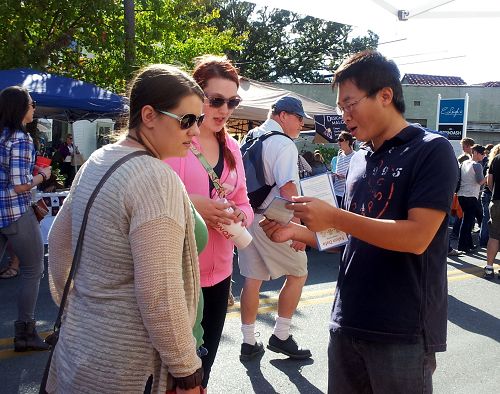 两位美国女士了解了中共活摘法轮功学员器官的罪恶,难抑心中的愤慨:“我们帮你们征集(反迫害)签名!”于是,她们拿起签名簿,走向过往的人群,一面介绍在中国发生的骇人听闻的迫害,一面鼓励大家都来签名,共同谴责中共活摘器官暴行。