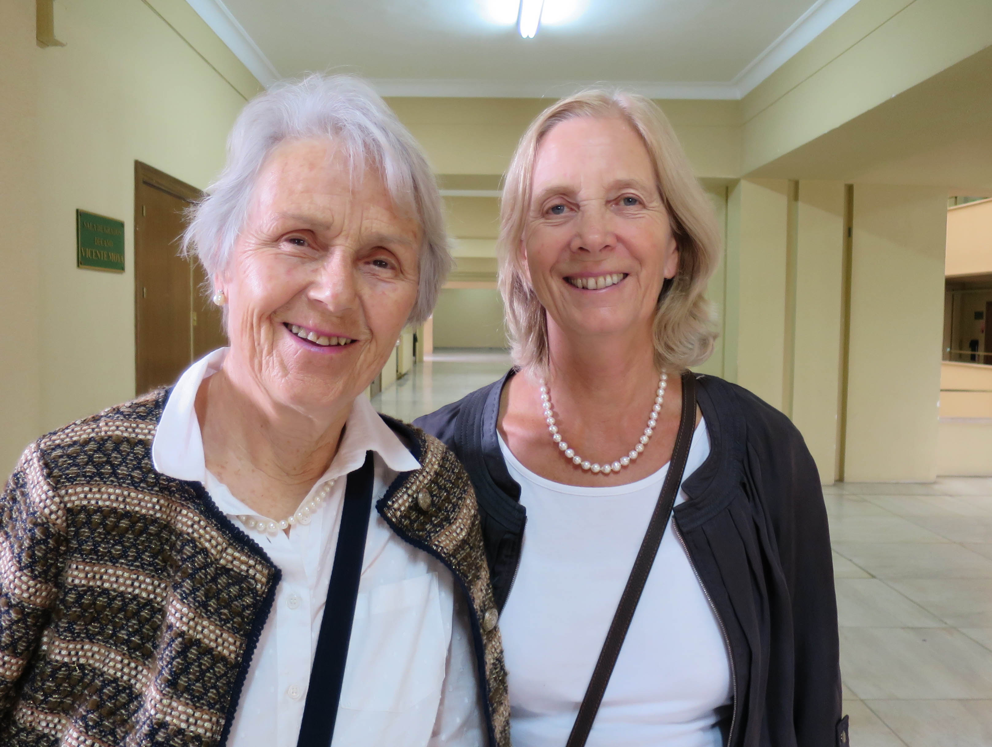 ![]() 瑞士的法轮功学员,八十岁的莎伯雷Chablais(左)和珑祥女士Longchamp(右) |