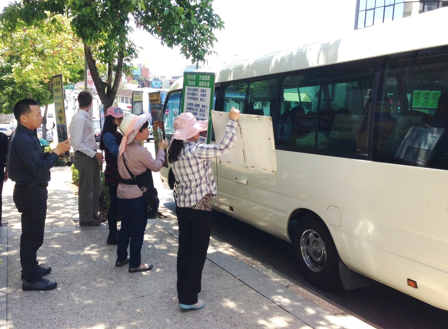 ![]() 图1:法轮功学员在澳洲布里斯本中国城游客上下车的地方举展板。 |