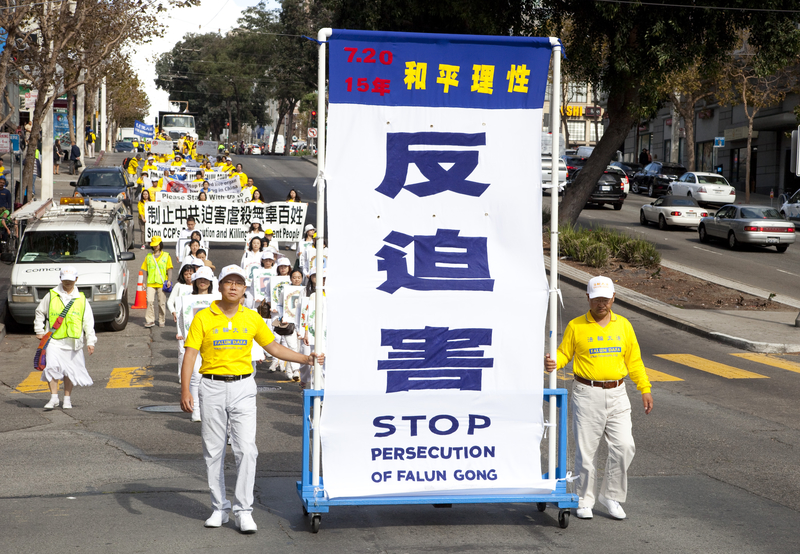 ![]() 图3-4:法轮功学员在旧金山市政中心附近举行游行 |