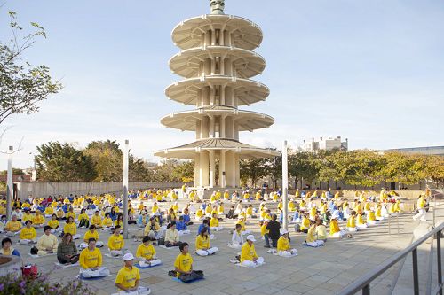 ![]() 图1-2:法轮功学员在旧金山日本城集体炼功 |