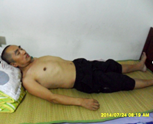 整整九十天的非人摧残,令王海金脱了相,牙齿被打掉,近一百八十斤的体重,只剩一百三十多斤,见饭就恶心想吐,喝点稀粥一会就全吐出来,整个人精神恍惚,黑夜白昼无法入睡,一躺下就上不来气,一宿宿在床上坐着、在屋里来回走着,坐立不安,有时倚着睡着了,几分钟就会突然惊醒,惊恐的坐起来,而且在他惊恐的时候,会不自觉的摆出被插管灌食、铐在床上的“大”字形……