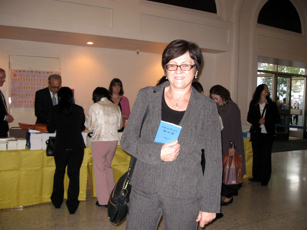旧金山市华人学员Sandra,买了一本西班牙文的《转法轮》。她说:“我先生是西班牙人,他一直都很支持我修炼法轮功,看到我修炼后的变化,他和他的朋友都知道大法好。”