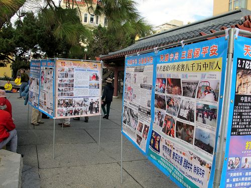 ![]() 图1-2:法轮功学员在旧金山花园角公园举办真相图片展 |
