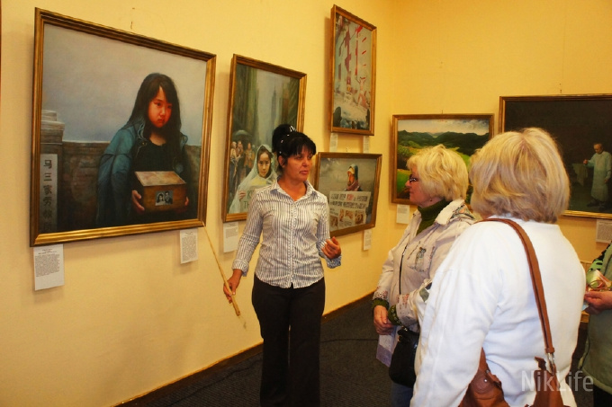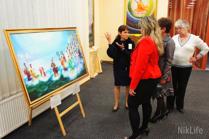 在niklife网站的美展报道中讲到,“真善忍”国际美展第一次在尼古拉耶市开展。来自加拿大、美国、台湾、澳大利亚等国家的名家绘画在此引起震动。这些画的作者——法轮大法(或者法轮功)信仰者,按照“真善忍”最高原则进行修炼。画展讲述了:中国共产党引起的这场迫害,并对修炼法轮大法性命双修功法的人,施以残酷的酷刑、以及肉体上的消灭。