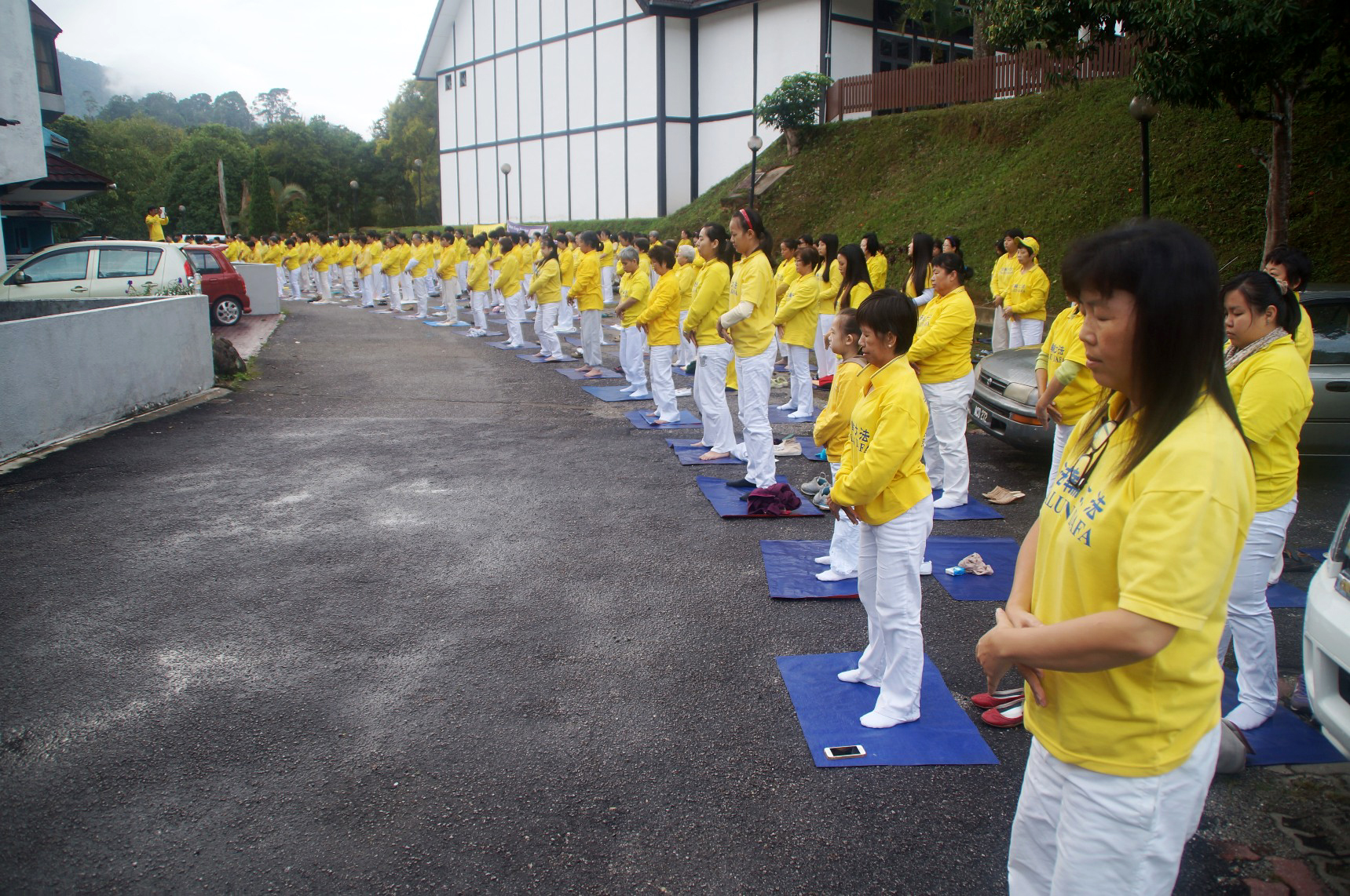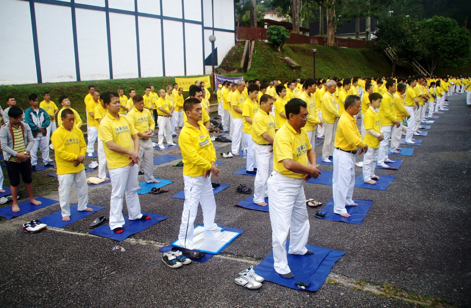 ![]() 法轮功学员们在清晨集体炼功。 |