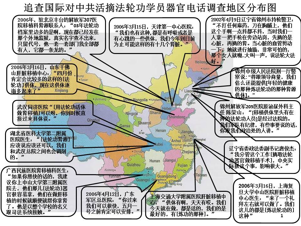 我们在前文中提到中国2000-2005年间,猛增的41500个移植器官供体来源不明。这些证人证词把中国器官移植的黑幕撕开了一个缺口。于是,国际社会各方正义组织和人士开始对此事展开调查。
