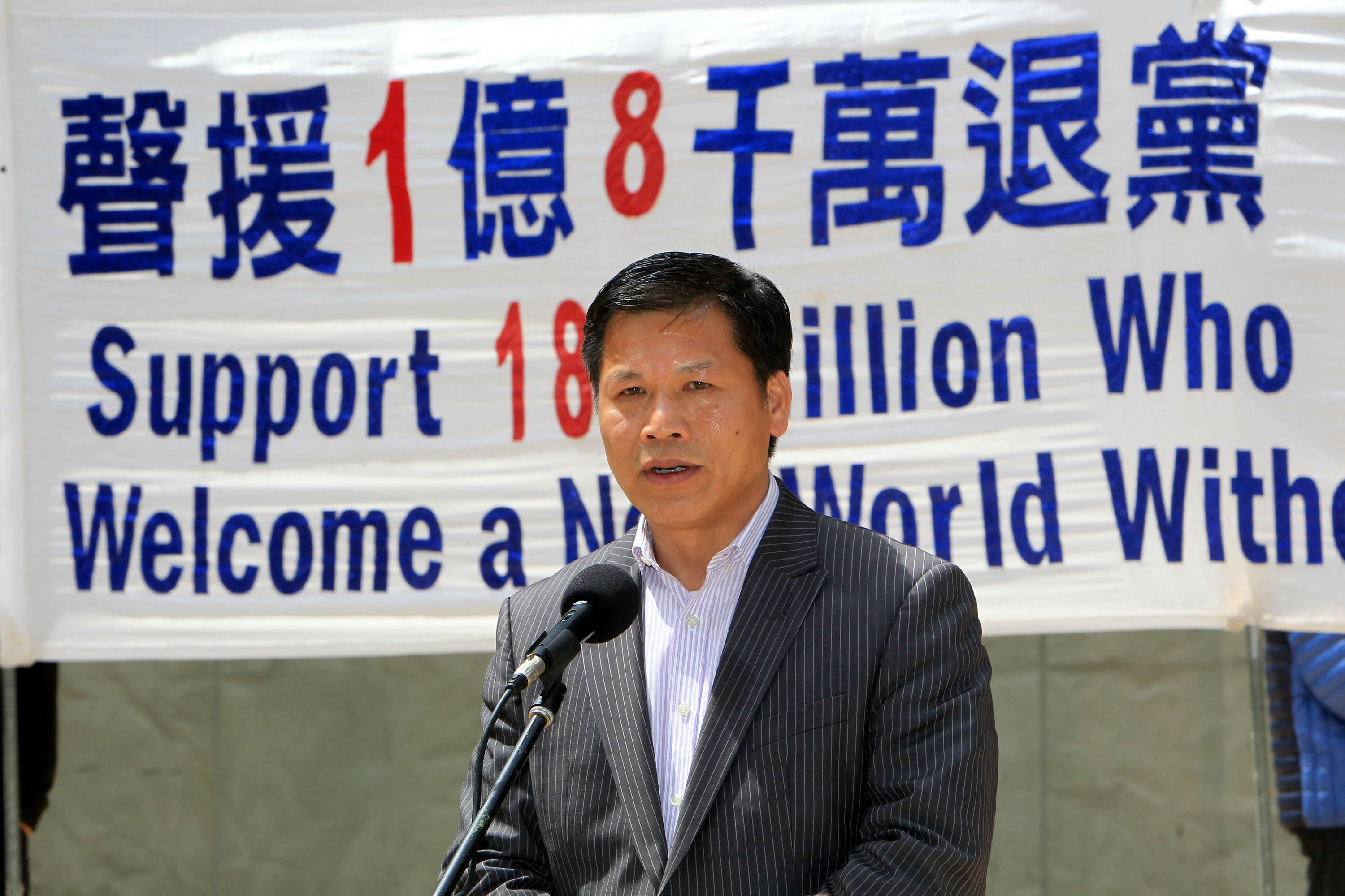 他在发言的最后说:“期待着‘三:退.’人数从一亿八千万增长到两亿、三亿、甚至五亿。我期待这一天的早日到来。”