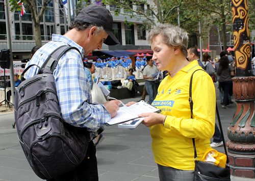 ![]() 图4-8:人们签名呼吁澳洲政府采取行动制止中共活摘器官。 |