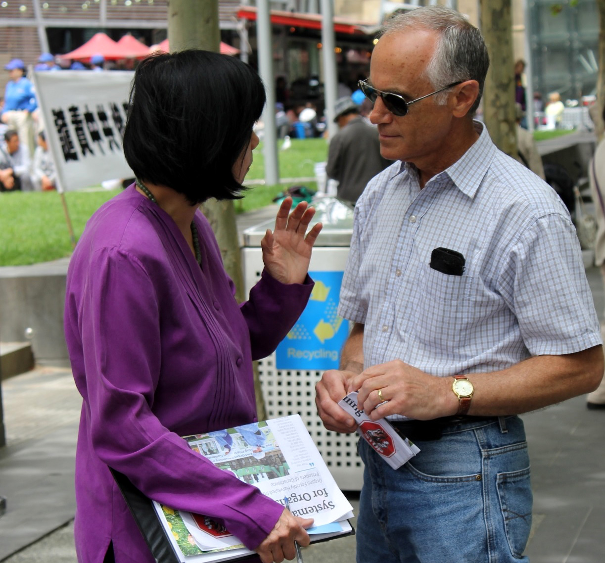 来自瑞典的嘉勒波特(Olle Jarlebort)先生是一家跨国公司的销售经理,他在集会上驻足良久,神情凝重。他说:“我自己是一名基督徒,所以我知道很多信仰团体,因为和政府的信仰有出入而遭受迫害,他们都经历了一段非常艰难的时期。我支持法轮功的反迫害运动,我认为每个人都应该有信仰自由,每个人都应该有表达自己想法的自由。如果一个国家没有言论自由,那么它的政治体系肯定有问题。尽管中共一直在审查封锁社会媒体,但是人们总会找到新的方法来表达自己的意愿。当人们团结在一起,就会形成一股力量,每个人都会意识到自己并不孤单,还有很多人和他们在一起抗争。坚持下去,政府最终只能屈服。”
