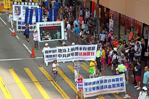游行队伍行经铜锣湾、金钟、中环等几个学运聚集区,吸引不少市民驻足观看,有参与学运的大学生高喊“法轮大法好”,也有大陆游客表示支持法轮功学员的信仰。