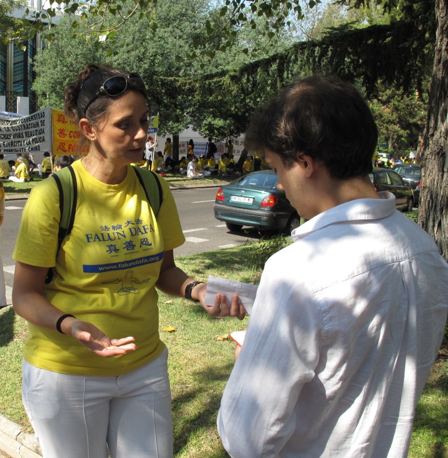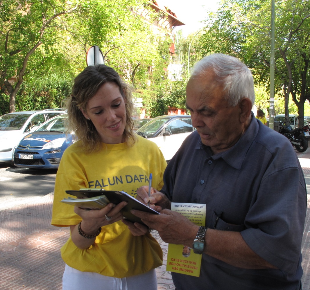 路过活动现场的莫里诺(Moreno)先生是位基督徒,他在与一位西人法轮功学员长时间交谈后表示:不管是谁,都应该反对活摘法轮功学员器官的反人类罪行,于是他在反活摘器官请愿书上签了名。