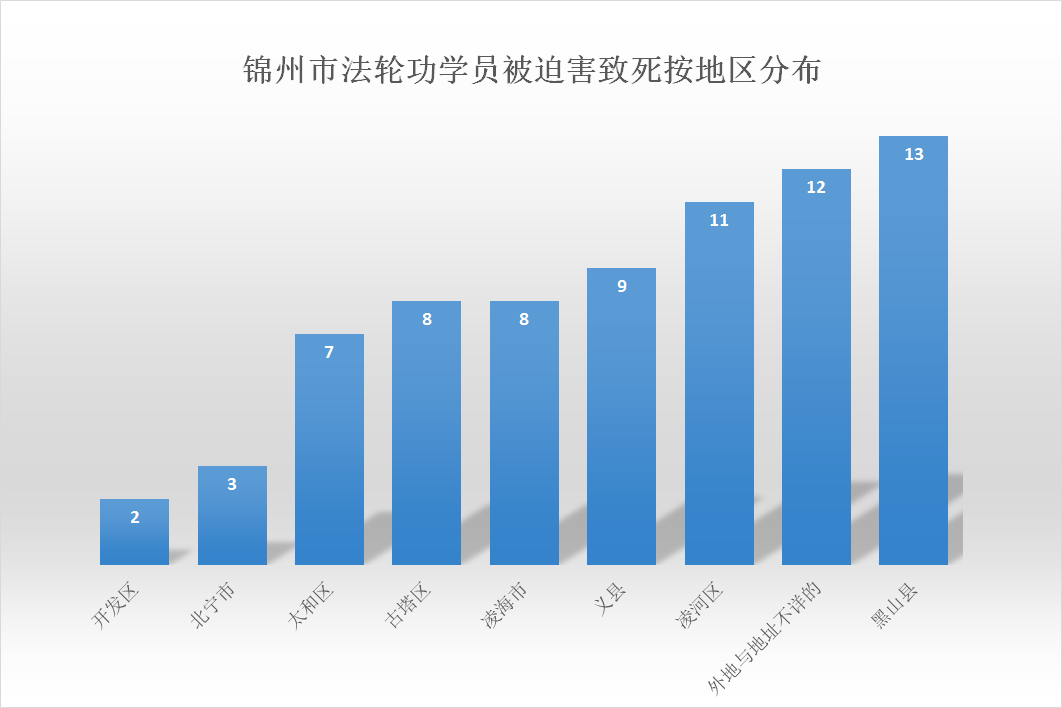 锦州市各地区被迫害致死的法轮功学员人数情况分布见下图: