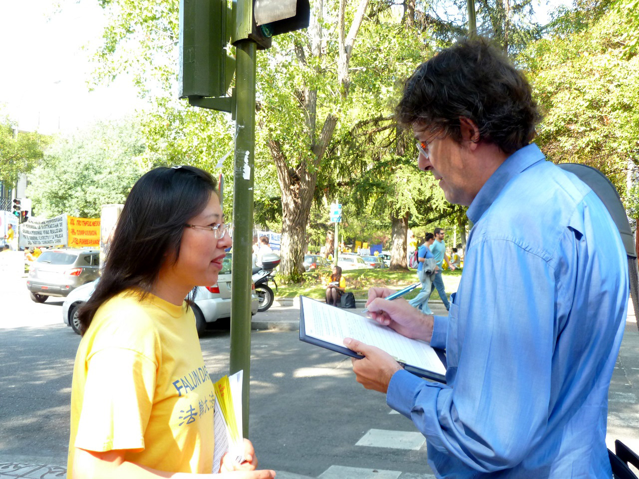 Paolo Gil从事经济相关的工作,先前他已经听说过法轮功和中共针对法轮功的这场迫害。他说:“这是一件非常残酷的事情。我反对中共迫害法轮功。”最后他在反对中共活摘法轮功学员器官的征签表上签了他的名字。