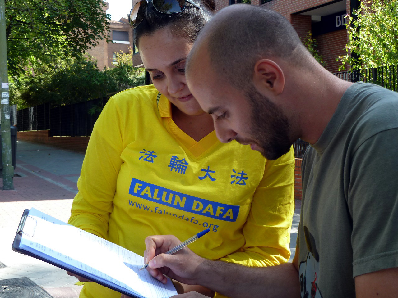 发言把中共迫害法轮功的罪恶,再一次传递给西班牙民众,过路的世人听到后都为之震惊,而学员进一步的讲真相,使不少民众明白了在中国竟发生这种惨无人寰的罪恶纷纷签名支持法轮功学员反迫害。