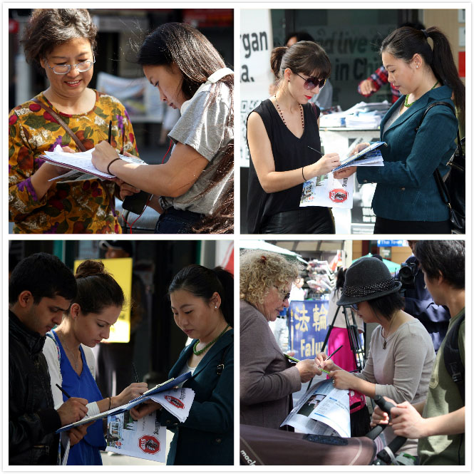 ![]() 悉尼市民踊跃在“制止中共活摘法轮功学员器官”征签表上签名 |
