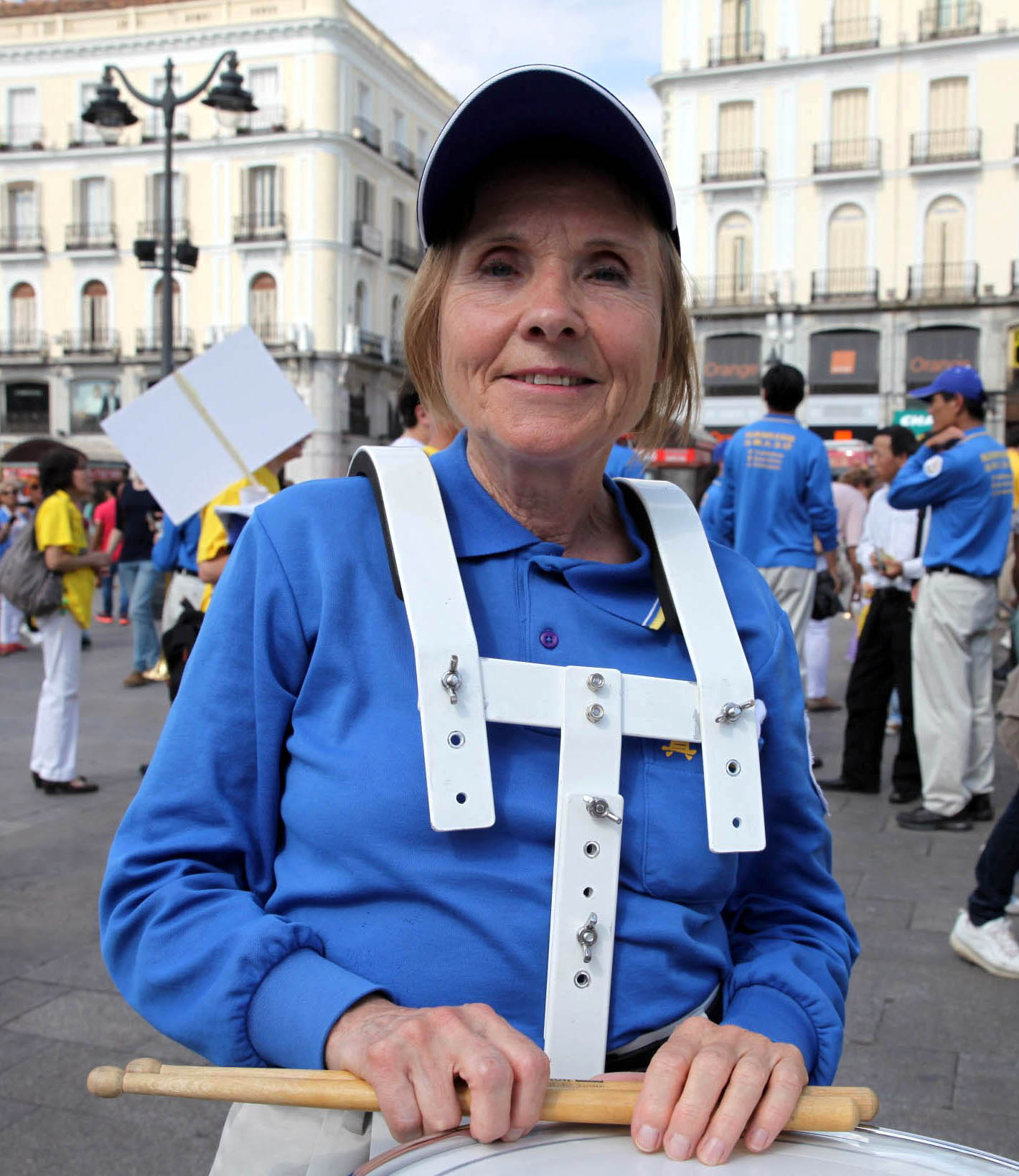 德国法轮功学员Strecker是欧洲天国乐团的成员,她精神抖擞地背着一面鼓,跟着天国乐团一路演奏过来,从外表上很难看得出她今年已经七十岁了。Strecker说这么长的游行对她来说不算什么,“除了太阳晒得比较厉害之外,一点都不累,我觉得整个过程中都不断被能量充实着。”