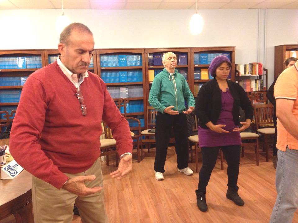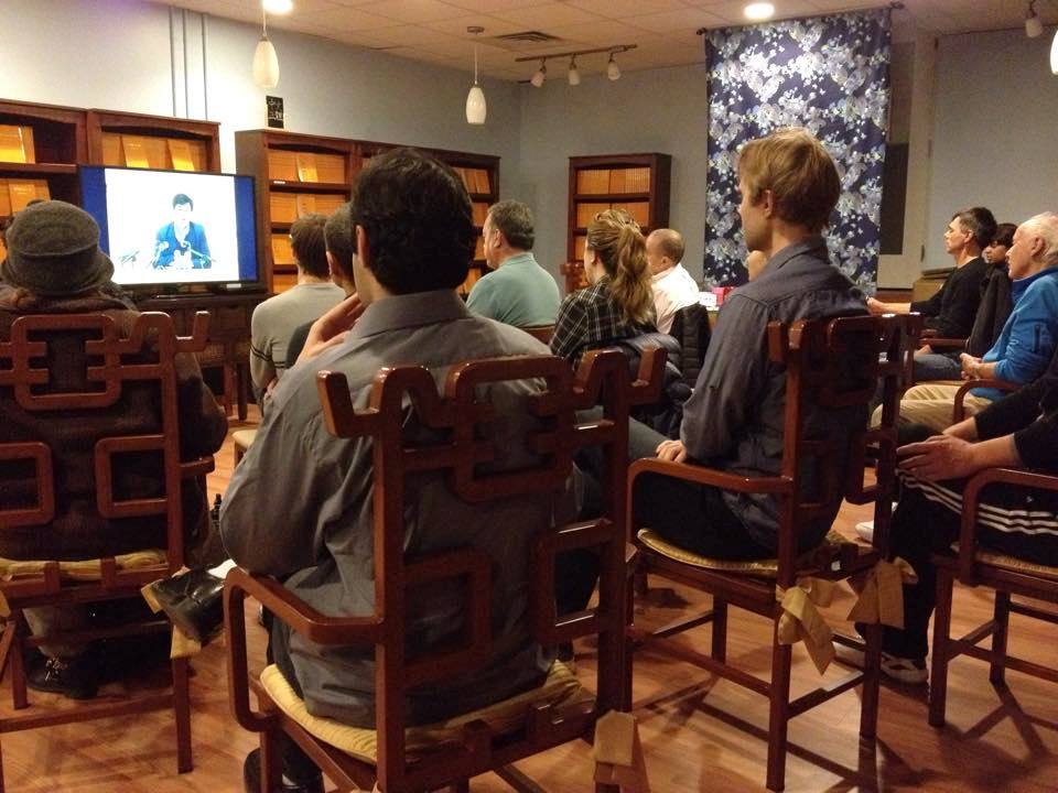 天梯书店自去年十月进驻纽约以来,每两月一次,举办英文法轮大法九天学习班,免费为大纽约地区的公众播放李洪志大师的讲课录像,和教授法轮大法的五套功法。本次学习班是二零一四年的最后一期。