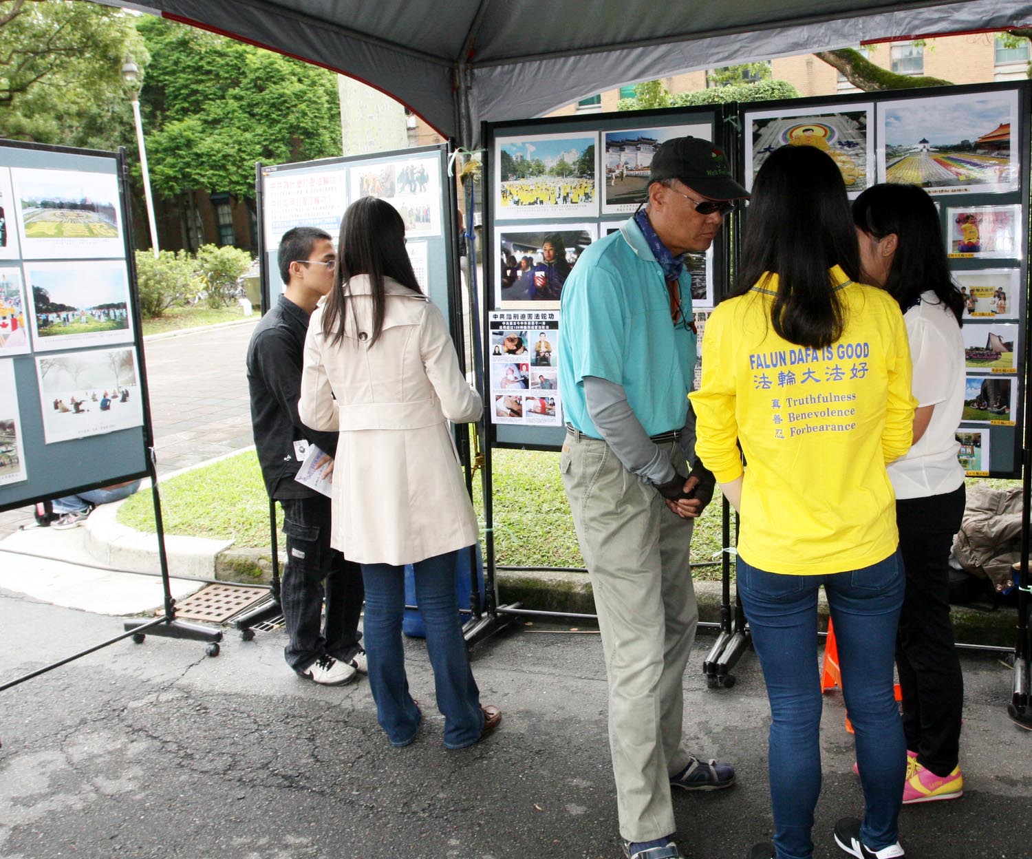 台北民众,在观看学员功法演示许久,当下对法轮功产生极大的兴趣,询问如何修炼。一名大二的高姓学生,看过挂在真相图板,他惊讶地表示,法轮功弘传全世界,在中国大陆、台湾、美国、加拿大等一百多个国家,这个功法肯定是好的。
