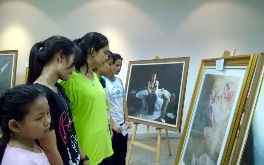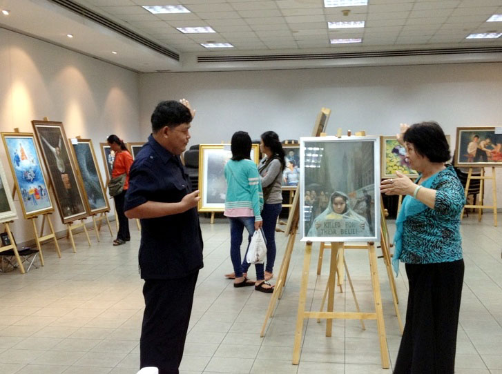 ![]() 泰国14 TULA纪念堂里,观众欣赏真善忍国际美展 |